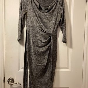 Ann Taylor XS Silver/Gray 3/4 Sleeve Ruched Dress