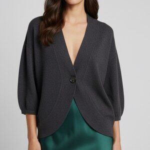 Ann Taylor Vintage Y2K Wool Blend 1 Button Rounded Hem Ballon Sleeves Cardigan Sweater Top Oversized