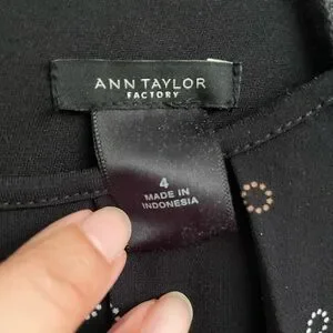 Ann Taylor black with white and tan circle print dress sz 4