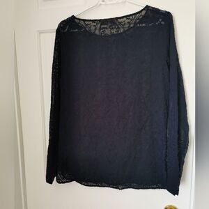 Ann Taylor Loft long sleeve blouse size M no rips or stains navy blue color
