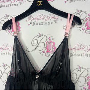 Ann summers babydoll dress nighty open cup bling black pink rhinestone buckle straps with diamonds and floral flower diamond charm. Stunning. LARGE UK 16-18