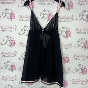 Ann summers babydoll dress nighty open cup bling black pink rhinestone buckle