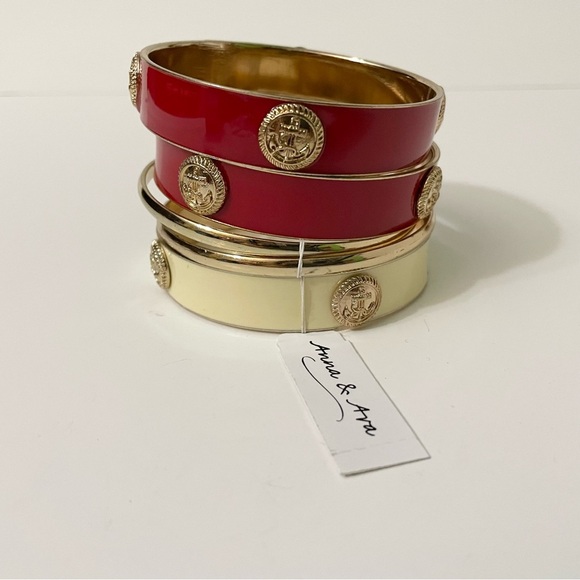 Anna & Ava Nautical Anchor Gold & Enamel Bangle Bracelet Lot