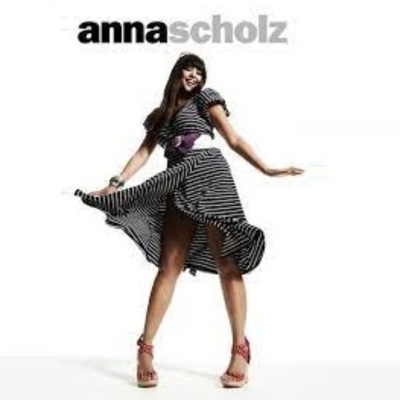 Anna Scholz Navy Stripe Cotton Midi Wrap Dress