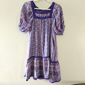 Anna Sui Vintage 90's Silk Mini Printed Boho Hippie Casual Dress Size Medium.