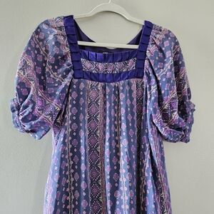 Anna Sui Vintage 90's Silk Mini Printed Boho Hippie Casual Dress Size Medium.