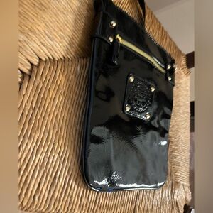 Anna Sui XTarget Crossbody Bag Patent Finish Black & Gold Hardware Adjustable