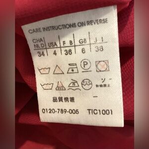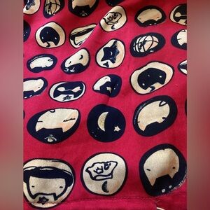 Anna Sui silk, lined dress, with drawstring waist, red with cream/black/silver.