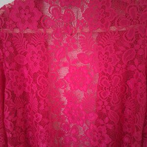 Annabella Blouse Women XL Pink Lace Open Bell Sleeves New
