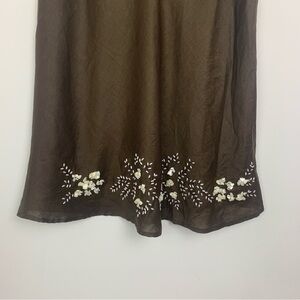 Anne Carson Brown Linen A-Line Skirt Embroidered