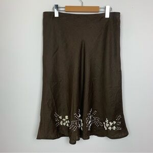 Anne Carson Brown Linen A-Line Skirt Embroidered Sz 10