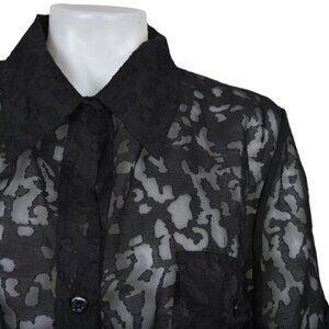 Anne Carson Linen Blend Sheer Blouse Short Sleeve Black