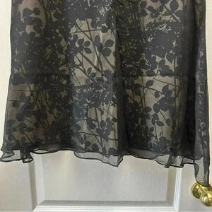 Anne Carson Silk Skirt A-Line Flowy Black Tan Sheer Overlay Lined Size 8