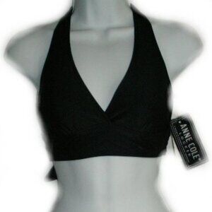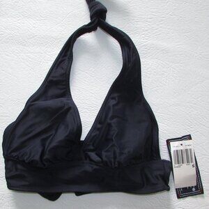 Solid navy blue v-front halter banded bottom top, with slight padding!