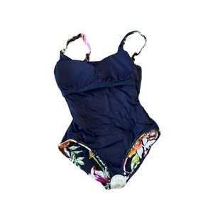 🆕 Anne Cole Navy & Green Tropical Bloom Belted One-Piece
