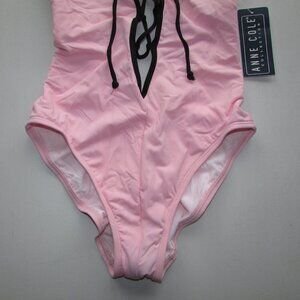 Anne Cole Pink Low V-Front Lace Up 1 Piece Swimsuit - Sz 8 - NEW