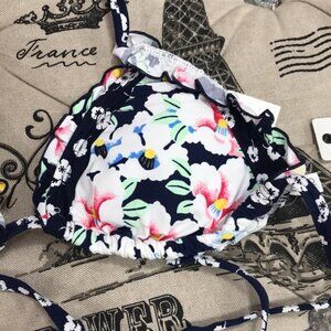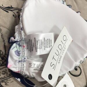 Anne Cole's cheeky bikini bottoms are styled with a playful mix of prints and cute lettuce-style trim throughout.