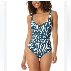 Anne Cole JUNGLE FEVER Printed V-Wire Ruched One-Piece Swimsuit Size 10
