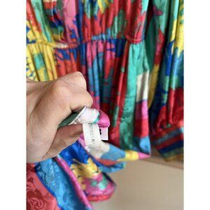 Anne Crimmins Silk Dress Vintage Colourful 80s Vibrant Long Dress Size 8
