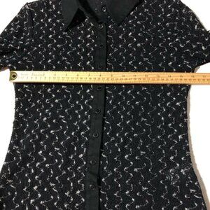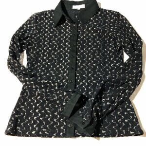 Anne Fontaine black white open knit lace collared long sleeve blouse sz 3 sheer