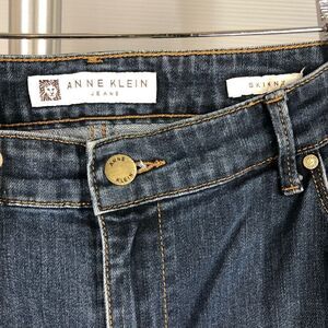 Anne KLEIN Missy Skinny Dark Denim Jean with Gold Stitching Sx 14