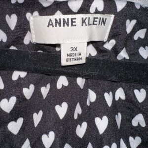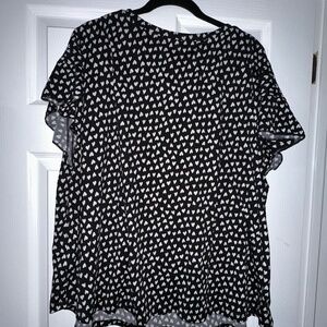 Add a touch of charm to your wardrobe with this Anne Klein short sleeve T-shirt. Featuring a flattering 3XL fit, soft fabric, and an adorable white heart pattern on a black background. Perfect for casual outings or layering under a jacket. Gently worn and in excellent condition.