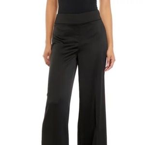 Anne Klein ANNE BLACK Women's Montreal Wide Leg High Rise Satin Pants,US 10