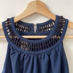Anne Klein Asymmetrical Maxi Halter sleeveless Dress, navy blue size 6