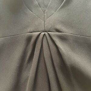 Chic black dress by Anne Klein. Features a stylish V-neck and elegant pleats. Perfect for versatile wear.