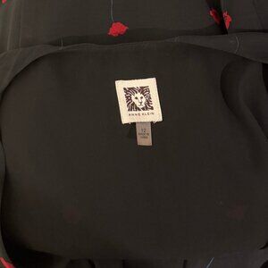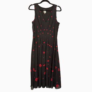 Anne Klein Black Floral Midi Dress Size 12 Sleeveless V Neck Fit Flare