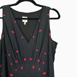 Anne Klein sleeveless black midi dress with red floral embroidery in a flattering V-neck fit-and-flare silhouette. Elegant yet easy to wear, this dress is perfect for special occasions, date nights, or a chic daytime look.