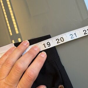 Description: These Anne Klein black legging pants offer a sleek and versatile design, perfect for both casual outings and exercise. Made from a stretchy, form-fitting material, they provide a comfortable fit with a wide elastic waistband for added support. The solid black color and tapered legs create a timeless silhouette, making them a staple in any wardrobe. Working front pockets.