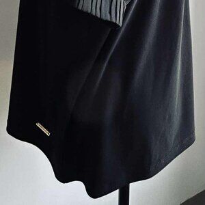 Anne Klein Black Stretch Knit Crewneck Top with Pleated Chiffon Sleeves – US L