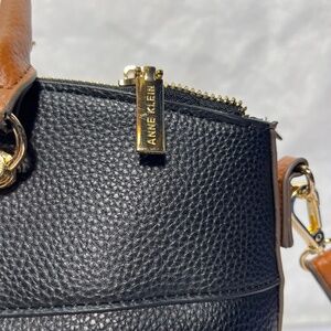 Anne Klein black textured satchel bag with brown dual straps so you can wear over the shoulder or crossbody. In excellent condition, lightly used.
