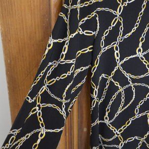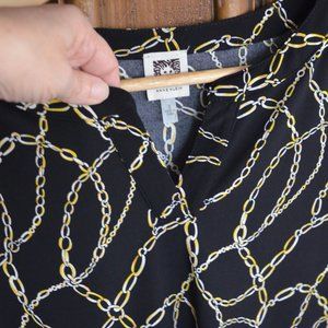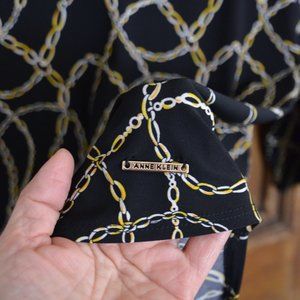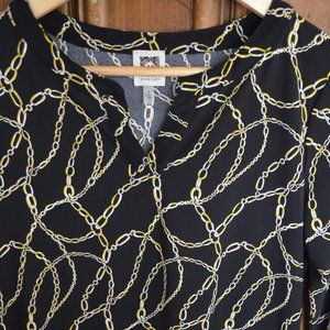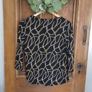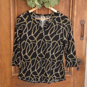 Anne Klein Black Top with a Gold Chain Patterned & 3/4 Sleeves