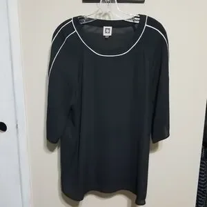 Anne Klein Black Tunic Top Medium Office Formal Contemporary