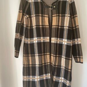 Anne Klein Black and Tan Plaid coat Cardigan with Buckle size M NWOT