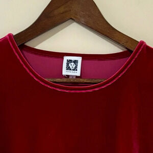 Red wine coloured velvet Anne Klein blouse, size medium. Please see enclosed manufacturer size chart. In very good condition, laundered and ready to wear.
