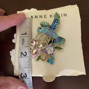 Anne Klein Colorful Hummingbird and flower Brooch