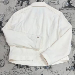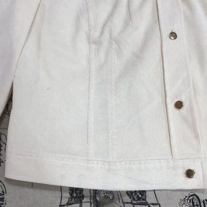 A beloved casual jacket silhouette goes upmarket with a snowy white corduroy fabric and gleaming golden buttons fastening the front.