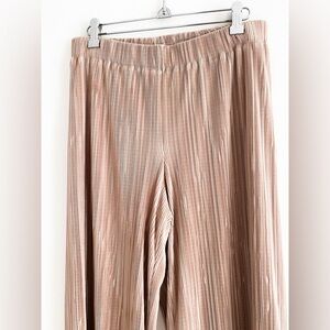 Anne Klein Gold Pleated Wide Leg Pants with Elastic Waist, Size Small