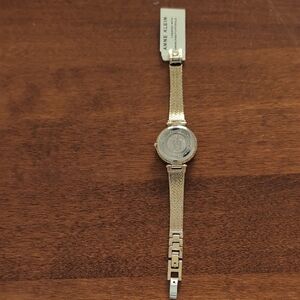 BNIB. Chic Anne Klein watch with a gold-tone mesh bracelet featuring Swarovski Crystals surrounding the time piece and band clasps. Rose gold face band.