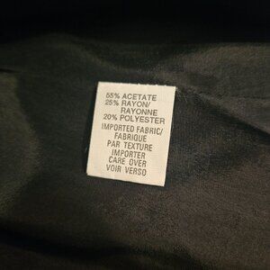 Features: Fully lined, functional front pockets, sleek and structured silhouette, excellent drape