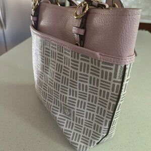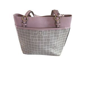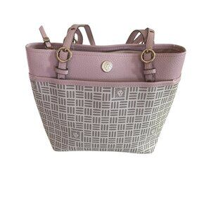 Anne Klein Pink & Grey Tote Bag - Gold Hardware - Geometric Print Purse Satchel