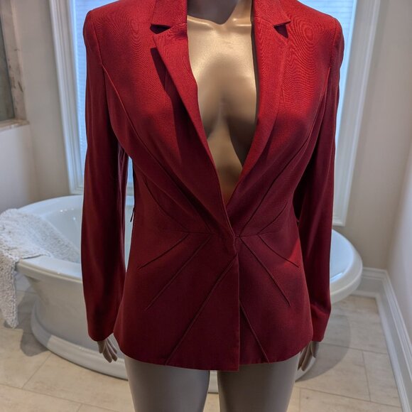 Anne Klein Red blazer. One button, size 6. Like new. Flattering detailing on waist area