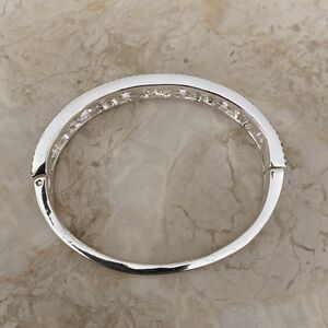 Elevate your wristwear with this stunning Anne Klein Hinged Navette Bracelet in sleek silver tone, with beautiful oval pearls and adorned with crystals.