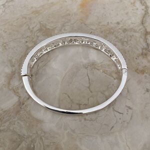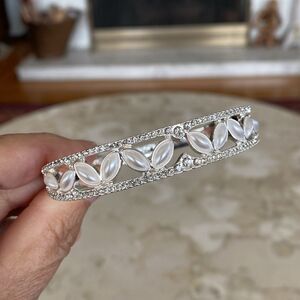 Anne Klein Silver Tone & Pearls Hinged Cuff Bracelet