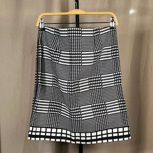 Anne Klein Size 10 Faux Leather Checked Houndstooth Mini Skirt Zipper Detail