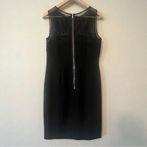 Cocktail dress. Zigzag fishnet material/design upper. Zipper closure at back. 5.5” slit at back. Minimal stretch.