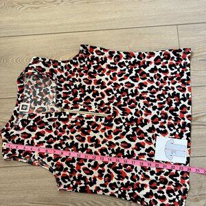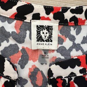 Elevate your wardrobe with this sophisticated Anne Klein top. Size Medium. Features a stylish cream base adorned with a striking black animal print. Versatile enough for the office, business casual events, or adding a bold touch to your everyday look. Fun and edgy twist on a classic silhouette.
